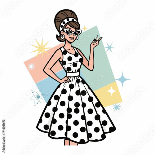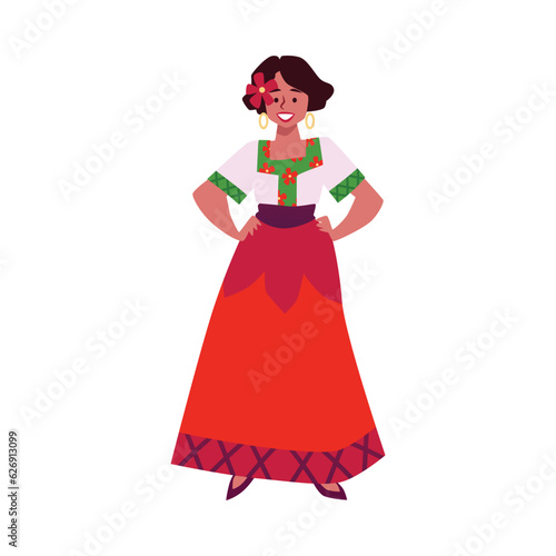 Молодая женщина в традиционном купальнике с векторной иконкой, выделенной на белом фоне.