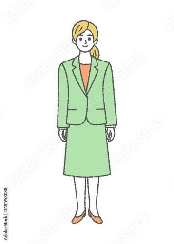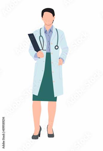 Молодая женщина в теплой осенней одежде и медицинской маске, идущая по векторному значку, изолированному на белом фоне. Концепция вирусной пандемии.