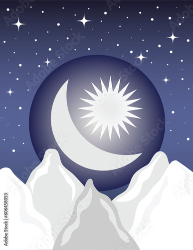 Зодиакальный круг со знаками гороскопа, Солнцем, Луной и созвездиями, векторная иллюстрация в стиле бумажного искусства. Колесо зодиака. Шаблон астрологического плаката.