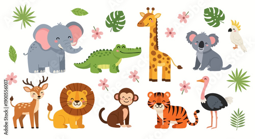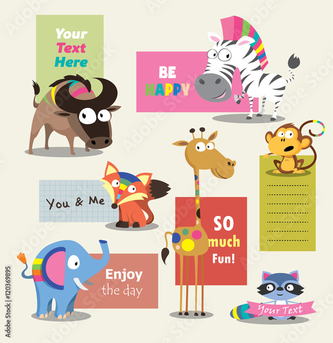Иллюстрация дизайна векторного плоского стиля животных зоопарка. Экзотические, лесные, полярные животные и вывеска с надписью зоопарка в центре.