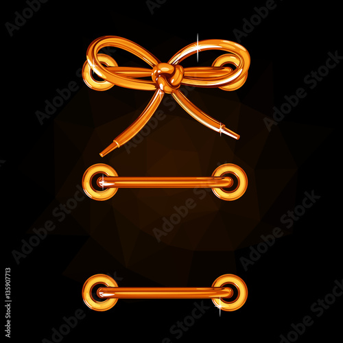 золотая шнуровка с бантиком на черном фоне с подсветкой и бликами