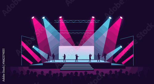 Silhouette crowd of enthusiastic supporters waving flags and lifting scarves during energetic celebration event, creating a dynamic festive atmosphere in vector illustration