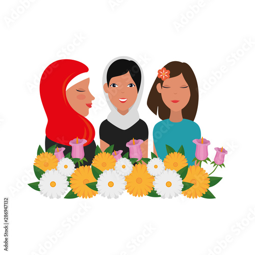 profile of islamic woman with traditional burka in floral wreath