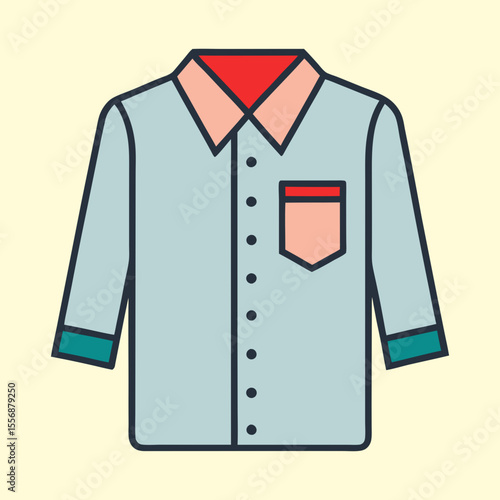 Illustration of a long sleeve button down shirt with pocket business casual and formal wear line art fashion icon