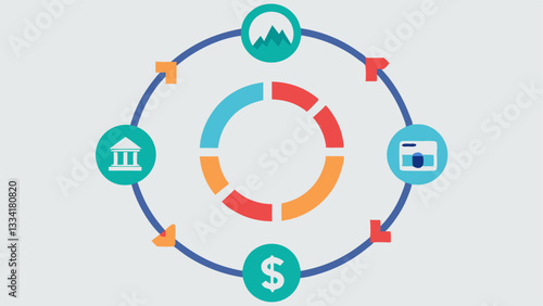 Economic Cycle A circular flow chart depicting the economy moving through phases of expansion and contraction influenced by central bank interest rate decisions.