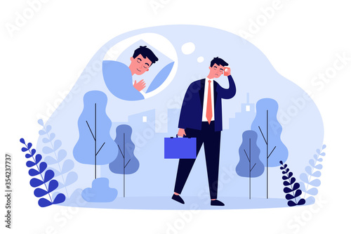 Burnout syndrome business vector abstract concept. Lonely and depressed businessman in minimalist artistic style. Sadness, hopeless situation.