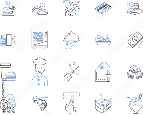 outline icons set - drinks concept. frappuccino, toast, boiling, juice bottle.