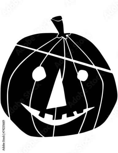 Vector art of a black silhouette of a scary halloween pumpkin jackolantern with an evil face, isolated on a