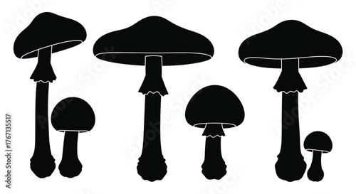 Silhouette collection of mushroom shapes, vector fungi illustration for nature, forest, botanical, mycology, design elements, biodiversity, and educational projects