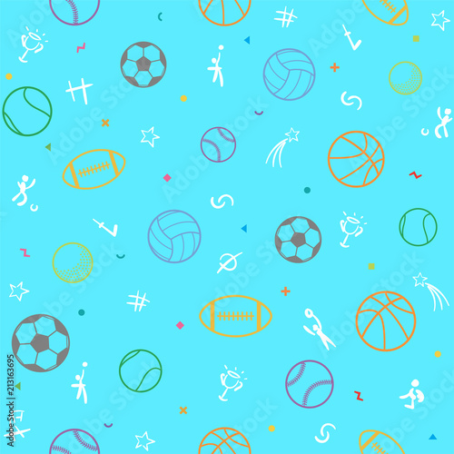 Sport theme seamless pattern background; football; baseball; volleyball; basketball