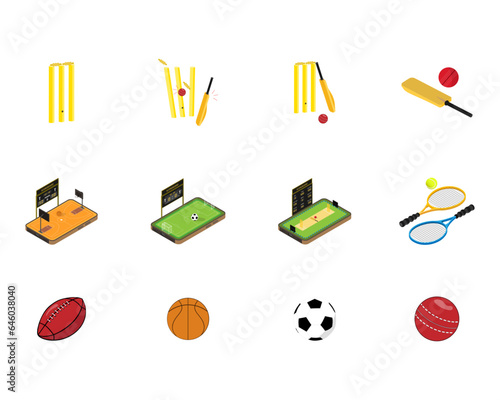 Sports hobby, ball equipment for football, basketball and volleyball. Isolated icons of ball for tennis and rugby, cricket and bowling. Vector in flat style