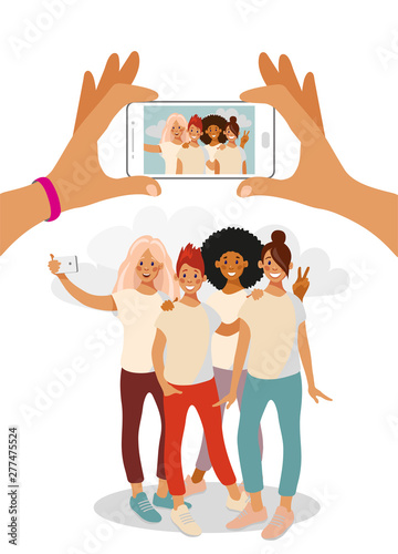 Group of cartoon young people talking. Teenagers.