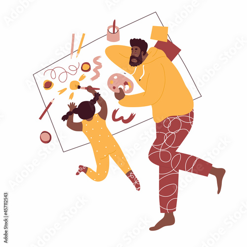 Full length portrait of black family. African american family with children, mother, father and pet. Flat vector illustration isolated