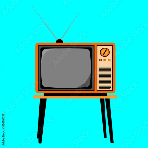 Retro television set with antennas line art drawing in black and white. Vector retro hand drawn illustration.