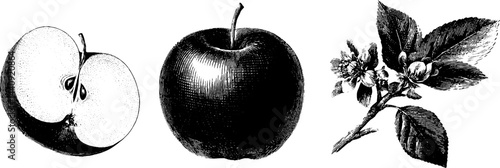 Kei apple fruit vintage engraving, hand-drawn black sketch in old engraving style, antique botanical print, retro exotic food illustration, trendy natural decor, classic fruit art design,