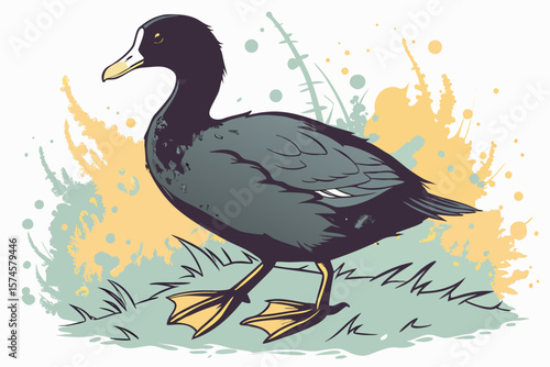 Artistic watercolor texture effect applied to a black duck illustration