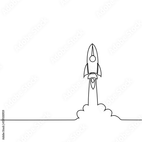 Rocket continuous one line drawing. Spaceship, rocket launch sign in simple linear style. Vector illustration.