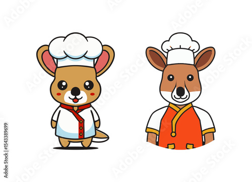 Cute cartoon quokka characters in various poses, some standing, eating food, and holding coffee or drinks.