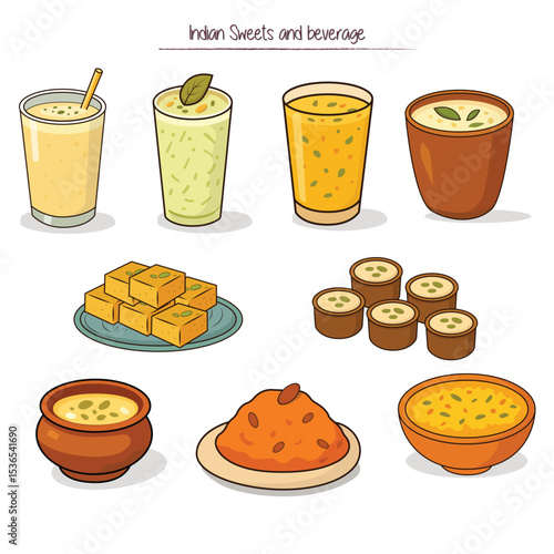Colorful flat vector illustrations of cocktails drinks soda and coffee beverages with garnishes