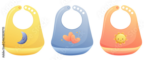 Baby bibs vector illustration set for feeding and drooling