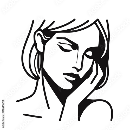 Drawing of a Beautiful Woman Face Disintegrating into Fragments - Photorealistic Illustration in Shades of Gray Isolated on a White Background, Vector