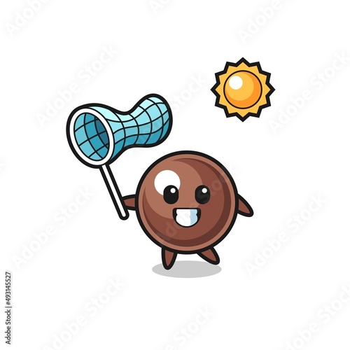 Butterfly catcher with net vector flat illustration
