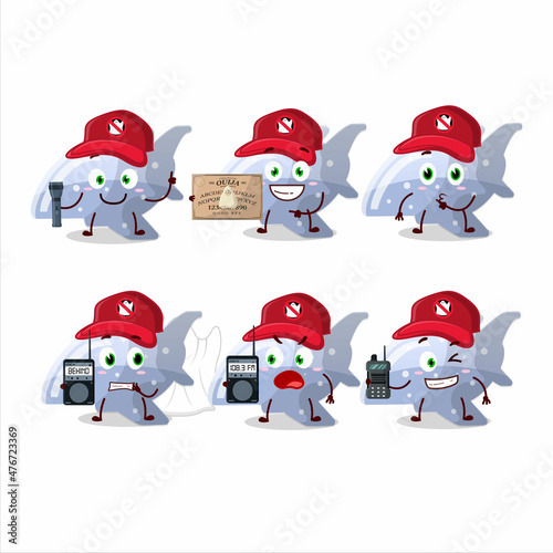 Cartoon character of plane blue gummy candy playing some musical instruments