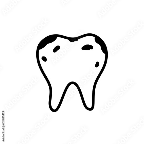 Tooth with caries isolated on white background. Dental care. Vector hand-drawn illustration in doodle style. Perfect for logo, various designs.