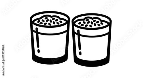 Minimalist illustration of two glasses filled with delicious chia seed pudding desserts