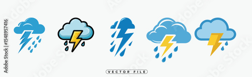 Five Variations of Thunderstorm Icons Cloud Rain Lightning Bolt