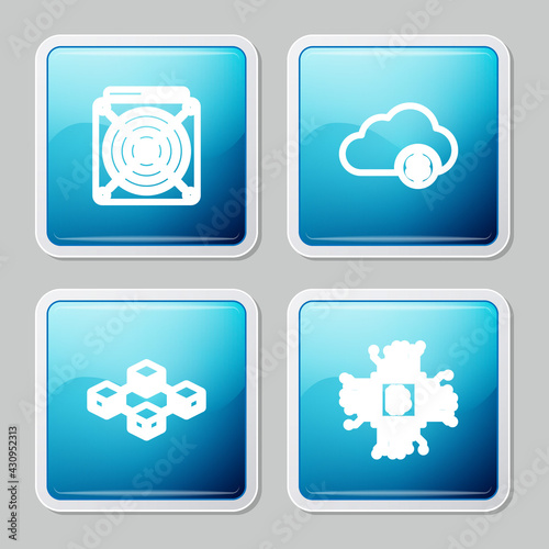 Set Blockchain technology, Processor, Cryptocurrency key and cloud mining icon. Vector