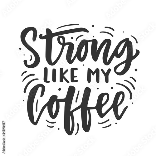 Strong like my coffee. Hand drawn brush lettering funny phrase