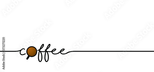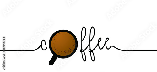 Coffee with line lettering and beans in vector typography. Continuous lowercase cursive coffee text. Vector illustration of an inscription for a poster, postcard, banner for a cafe. Hand drawn motivat