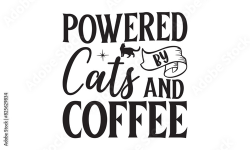 Powered by cats and coffee  on white background,Instant Digital Download. Illustration for prints on t-shirt and bags, posters