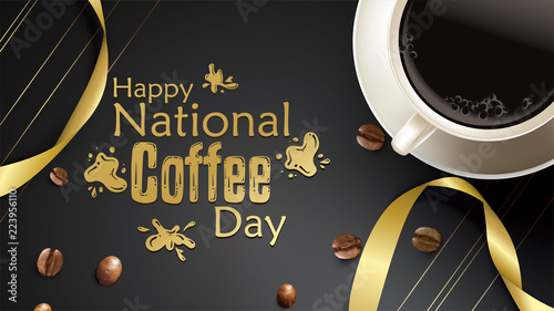 Vector illustration of happy International or national Coffee Day with hand lettering. Suitable for greeting card, poster and banner. mobile background