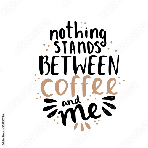 Hand lettering illustration about coffee. Nothing stands between coffee and me phrase
