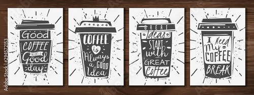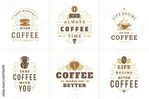 Coffee quotes vintage typographic style inspirational phrases vector set.