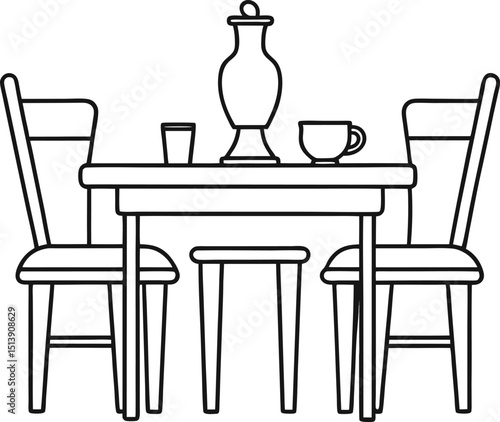 Vector illustration of a dining table with two chairs, a common piece of furniture used for eating meals