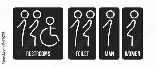 Toilet sign icons set, common male female restroom, toilet signs, WC signs collection