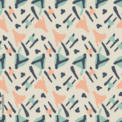Terrazzo seamless pattern with colorful rock pieces. Abstract backdrop with stone sprinkles scattered on light background. Modern vector illustration for fabric print, wrapping paper, flooring.