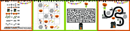 Pumpkin shaped Halloween maze game for kids vector illustration
