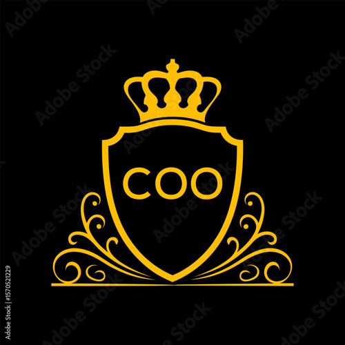 COO "Heraldic Sword Shield Wing Emblem with COO Initials  – COO Later Logo Military Logo Design Vector"