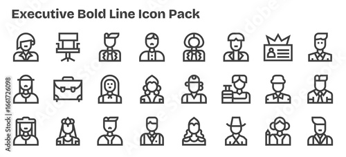 Outline icons of business roles: ceo, cfo, coo, strategist, and more