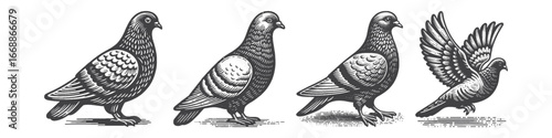 Vintage Hand-Drawn Pigeon Illustration, Urban Bird Engraved Vector for Wildlife and T-Shirt Design