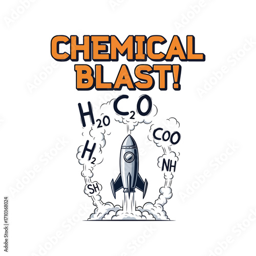 Rocket launching with chemical formulas and chemical blast text above it all halloween tshirt design