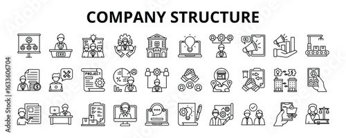 30 Company Structure Line Icons Vector - CEO, Management Team, Department, Shareholder, Employee, Technical Support