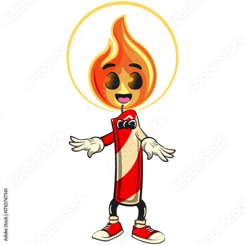 cute candle mascot cartoon vector illustration with light flame character wearing a bow tie and feeling coo, isolated for holiday and celebration design, work of hand drawn