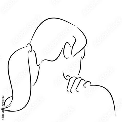 A person having a stomach ache. Pictogram Vector illustration. Silhouette and Line Art Styles