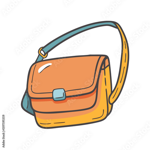 Hand-drawn illustration of a stylish blue and orange crossbody bag.