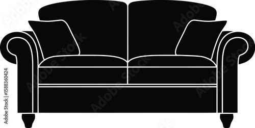 Elegant black silhouette of a traditional two seat sofa with cushions